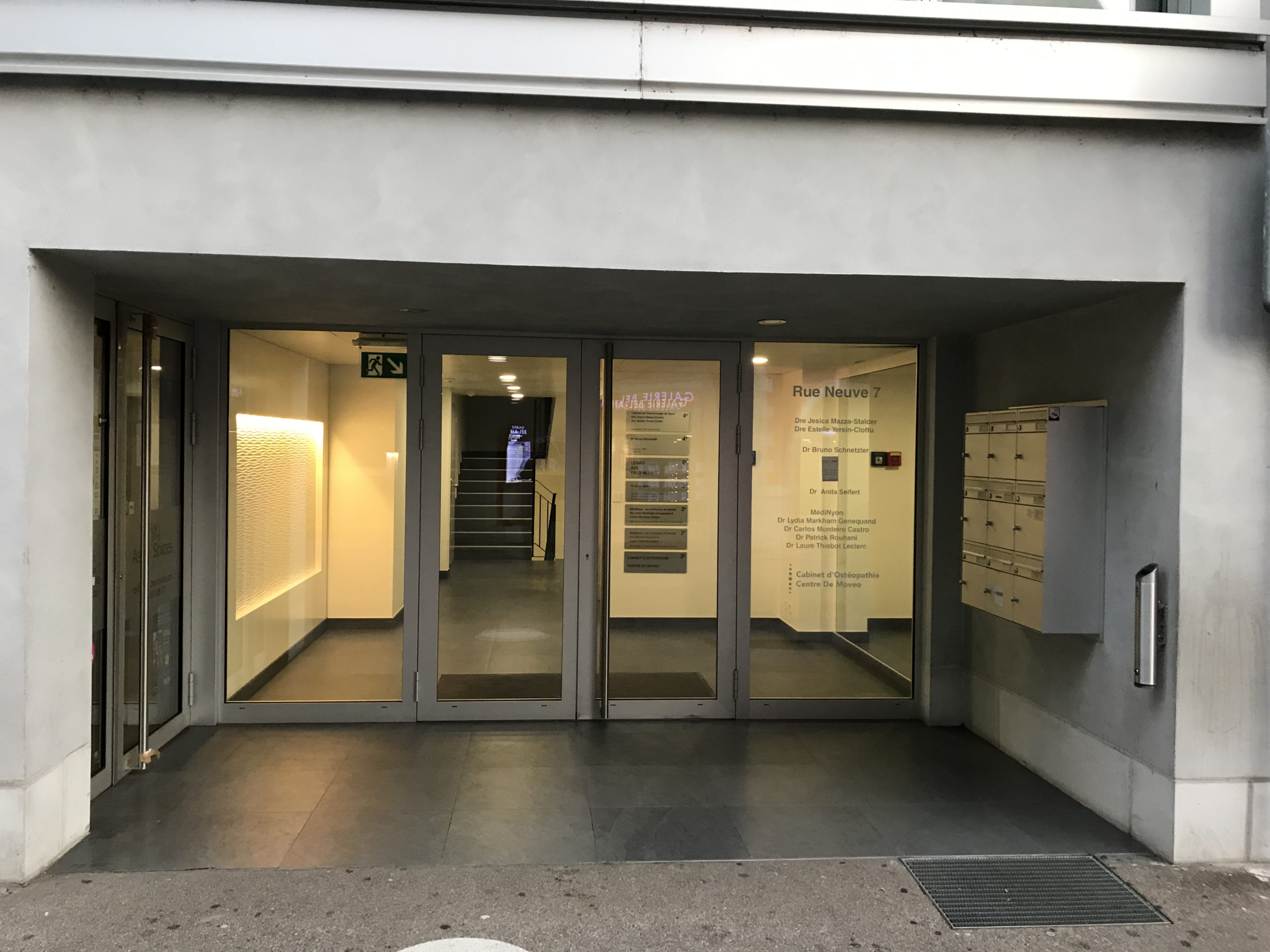 Le cabinet se trouve au 3ème étage, Rue Neuve 7, 1260 Nyon.